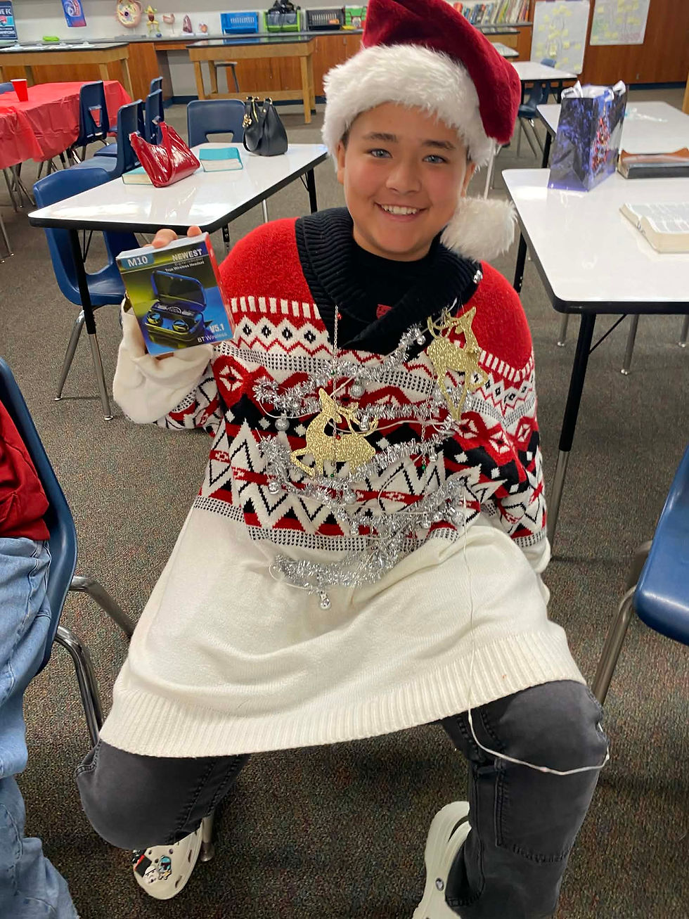 We had our Youth Ministry Christmas party. We ate pizza, had a gift exchange and most importantly taught about the real meaning of the holiday - Jesus! David, one of the volunteers, gave a quick message about how the best present to receive is the presence of God (I loved the play on words). And we also taught the kids that salvation is a gift from God that we can't earn. It is only through what Jesus did on the cross and that is why He came to earth to save us.